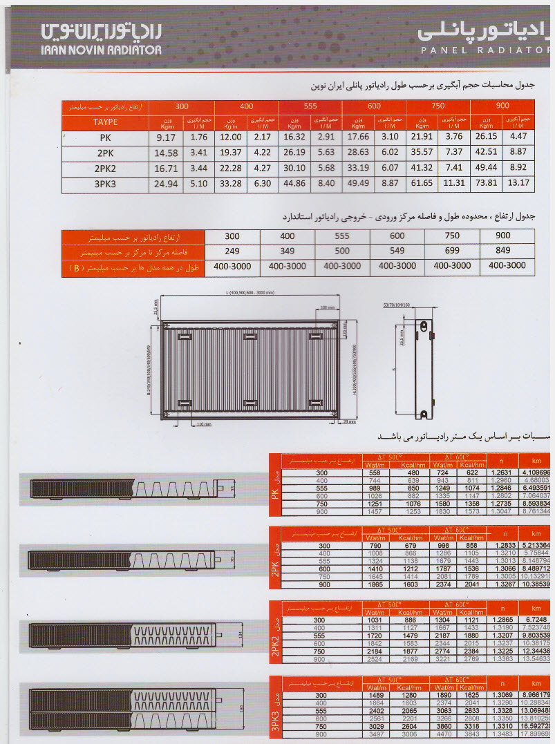 مشخصات فنی رادیاتور پنلی ایران نوین
