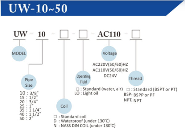 در جدول زیر ، مشخصات فنی شیر برقی آب یونید Uni-d نشان داده شده است :
